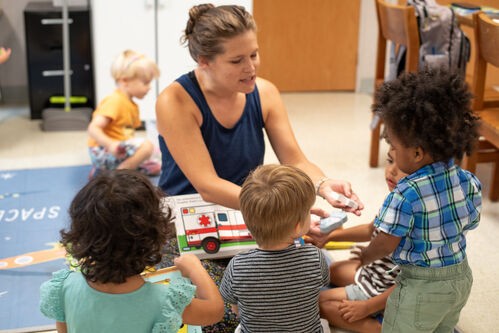 Children ages 1 & 2 will stop at the check-in station upon arrival, before heading into their classroom, which opens at 10:20am. In our Toddler Room, children will spend the morning playing, listening to an interactive Bible story, singing songs, enjoying a snack, and being prayed over.